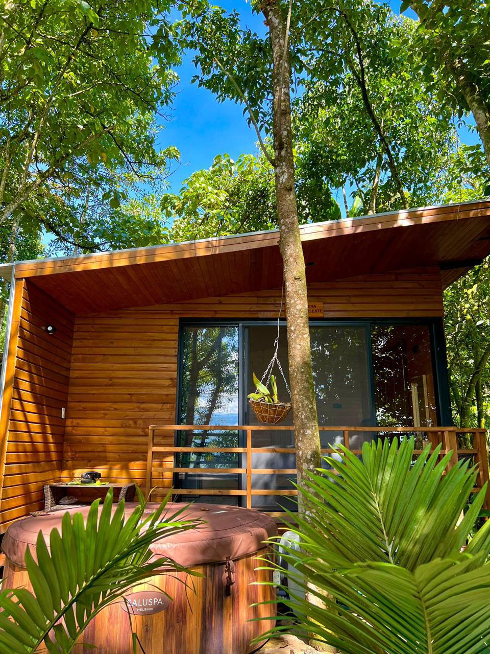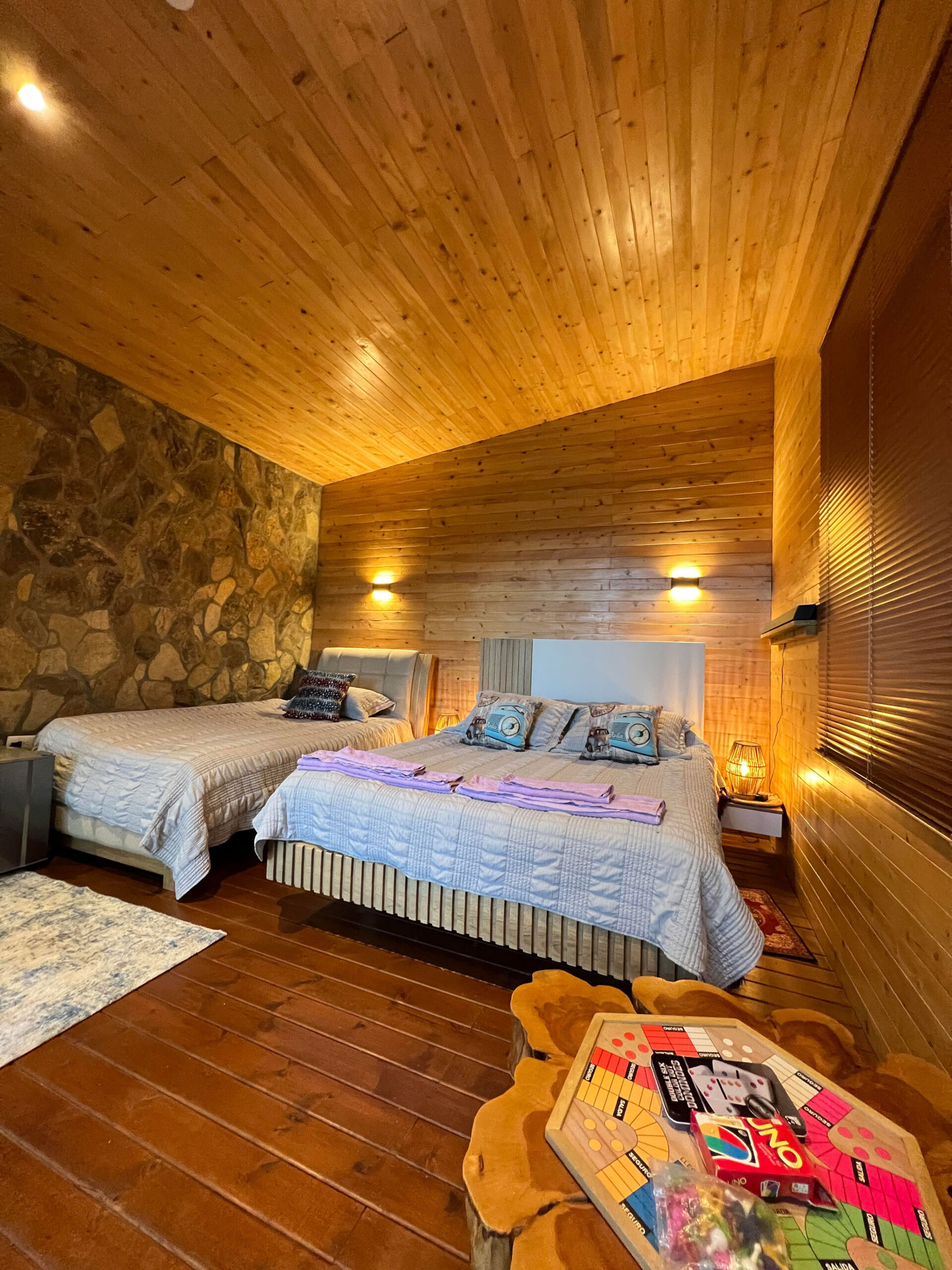 La cabaña Luna Llena tiene dos plantas. En la primera planta, una sala de estar está preparada para el disfrute de juegos de mesa, una buena lectura o simplemente para descansar. Este espacio se puede acondicionar con una cama doble o un sofá cama, según prefiera el huésped. En la segunda planta se encuentra la suite de pareja, íntima y privada, donde el amanecer ofrece un bello despertar. La cabaña cuenta con un jacuzzi exclusivo, una fogata que se puede disfrutar por la noche con un agradable pasabocas y una ducha al aire libre para una experiencia única. La comodidad de la cabaña, se combina con un mobiliario rústico apropiado para el descanso y disfrute. Todo está diseñado para el disfrute, incluyendo un minibar con bebidas refrescantes y snacks al gusto